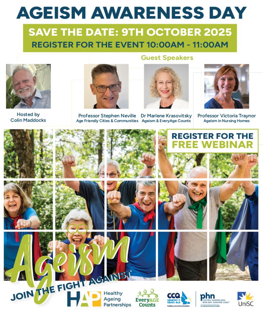 Healthy Ageing Partnership, EveryAge Counts and The University of the Sunshine Coast will bring you an inspiring event to raise awareness and take action against ageism.